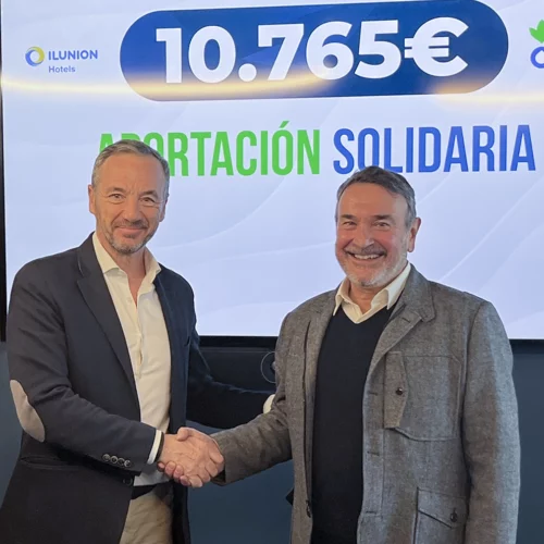ILUNION Hotels y Acción contra el Hambre renovaron la alianza que mantienen ambas entidades. Allí, Preciados entregó el cheque de “Hostelería contra el Hambre”.